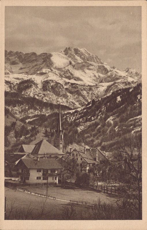 Zustandsbeschreibung der Ansichtskarte "Partenkirchen mit Dreitorspitze"