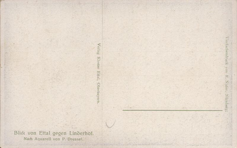 Zustandsbeschreibung der Ansichtskarte "Blick von Ettal gegen Linderhof, Bayern"