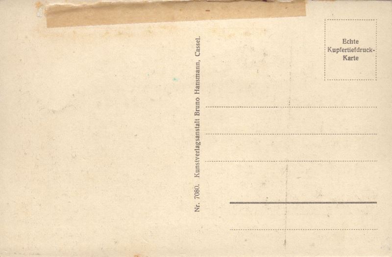 Oberfläche lädiert, Ecken bestossen, Kleberresten auf Rückseite: Papier teils abgerissen