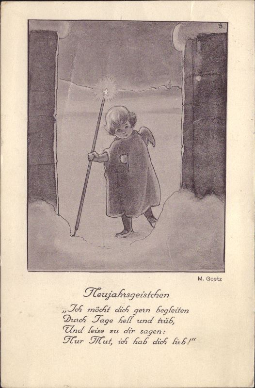 Zustandsbeschreibung der Ansichtskarte "M. Goetz, Neujahrsgeistchen"