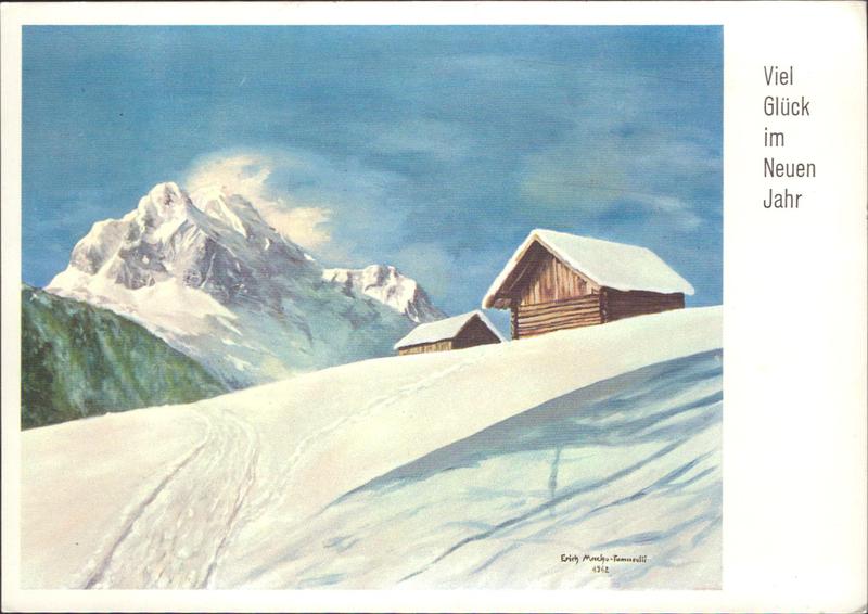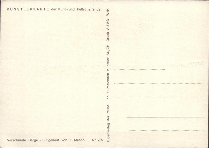 Zustandsbeschreibung der Ansichtskarte "Verschneite Berge- Fussgemalt von E. Macho"