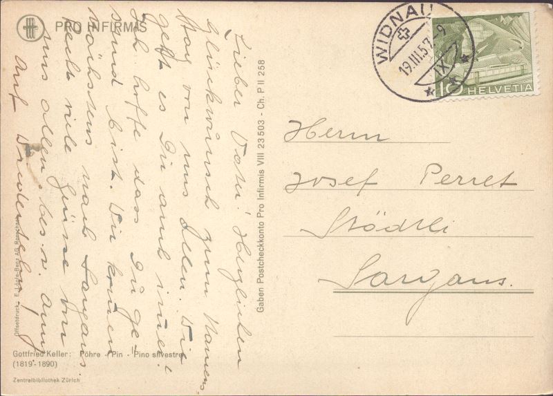 Zustandsbeschreibung der Ansichtskarte "Gottfried Keller, Föhre"