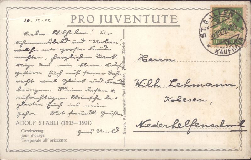 Zustandsbeschreibung der Ansichtskarte "Gewittertag von Adolf Stäbli"