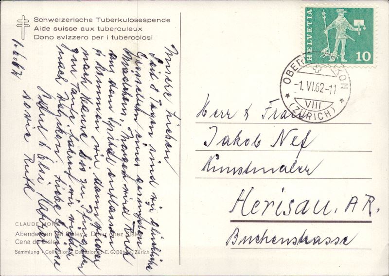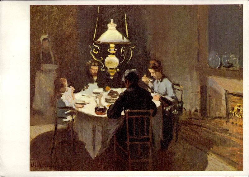 Zustandsbeschreibung der Ansichtskarte "Claude Monet, Abendessen bei Sisley"