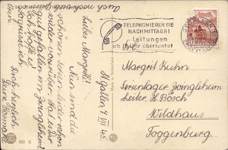 Zustandsbeschreibung der Ansichtskarte "J. Zürcher, Badernheim"