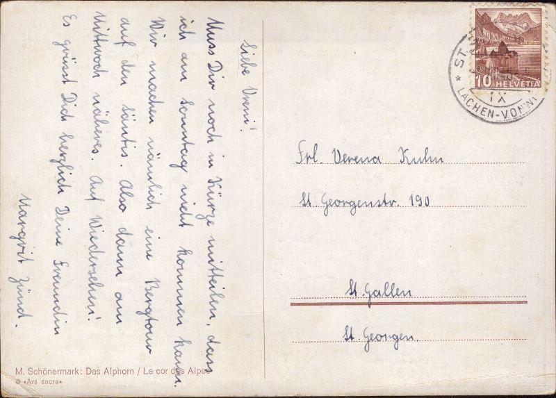 Zustandsbeschreibung der Ansichtskarte "M. Schönermark, das Alphorn"