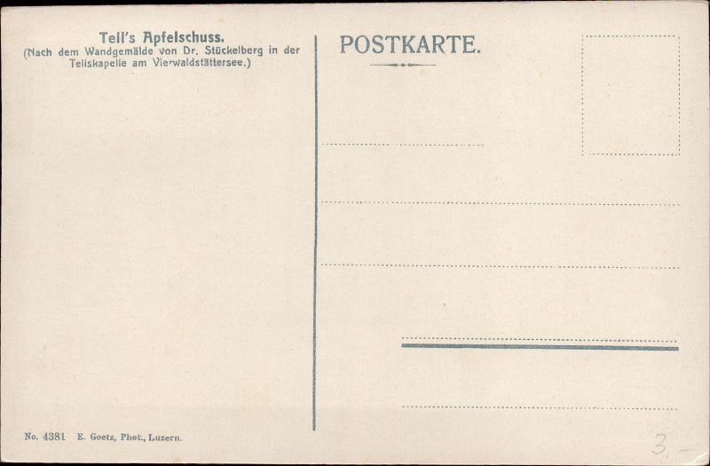 Zustandsbeschreibung der Ansichtskarte "Tell's Apfelschuss, Stückelberg"