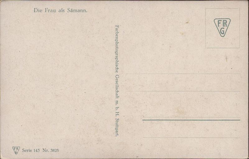 Zustandsbeschreibung der Ansichtskarte "Die Frau als Sämann"