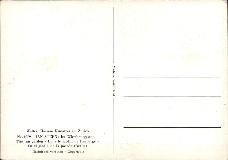 Zustandsbeschreibung der Ansichtskarte "Jan Steen: Im Wirtshausgarten"