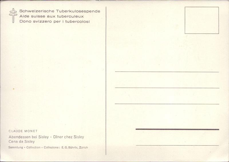 Zustandsbeschreibung der Ansichtskarte "Claude Monet, Abendessen bei Sisley"