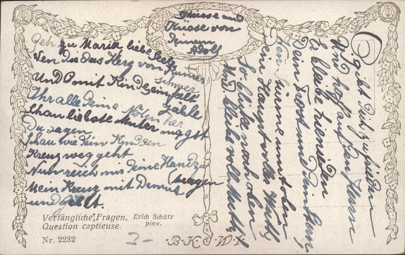 Zustandsbeschreibung der Ansichtskarte "Erich Schütz,verfängliche Fragen"
