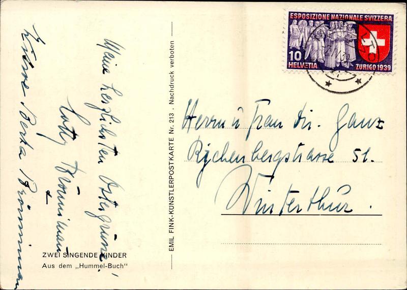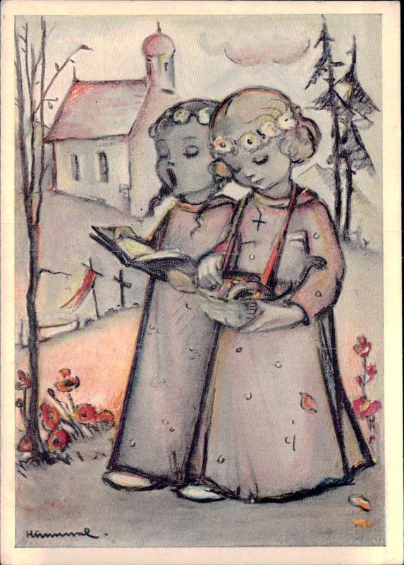 Zustandsbeschreibung der Ansichtskarte "Hummer, zwei singende Kinder"