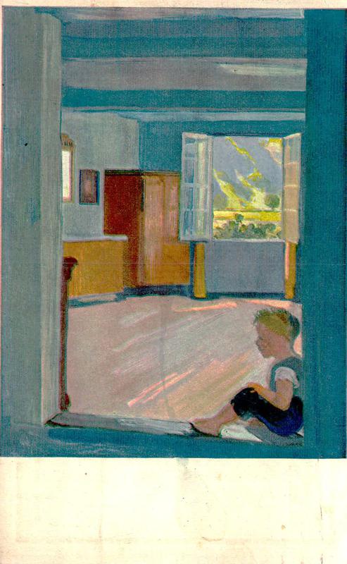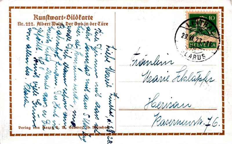 Zustandsbeschreibung der Ansichtskarte "Albert Welti: Der Bub in der Türe"