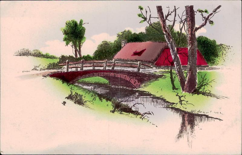 Zustandsbeschreibung der Ansichtskarte "Haus an der Brücke"