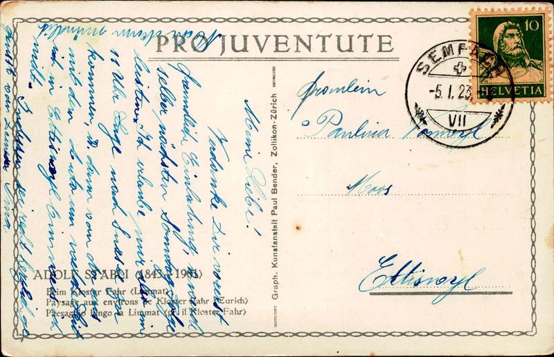Zustandsbeschreibung der Ansichtskarte "Adolf Stäbli, beim Kloster Fahr"