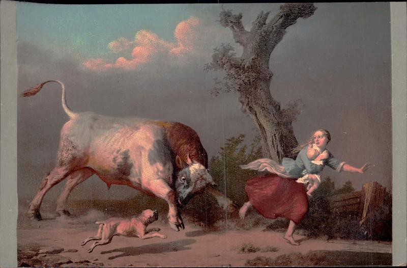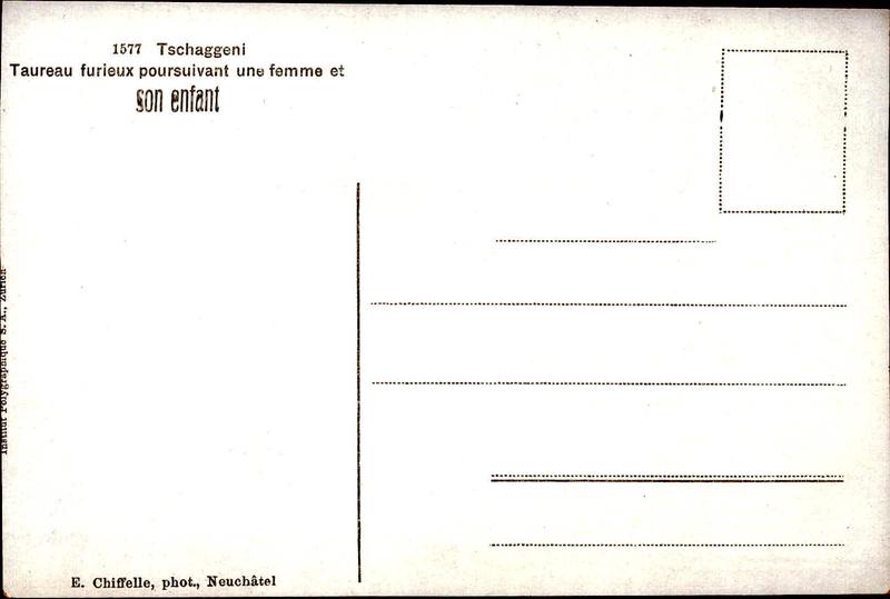 Zustandsbeschreibung der Ansichtskarte "Tschaggeni, Taureau furieux"