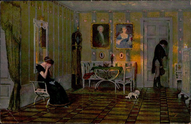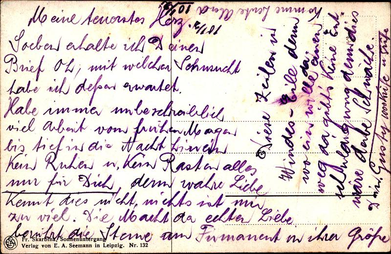 Zustandsbeschreibung der Ansichtskarte "Fr. Skarbina, Sonnenuntergang"