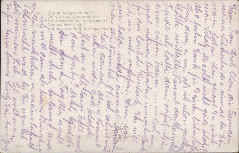 Zustandsbeschreibung der Ansichtskarte "Muttich, Ob wir uns wiedersehen?"