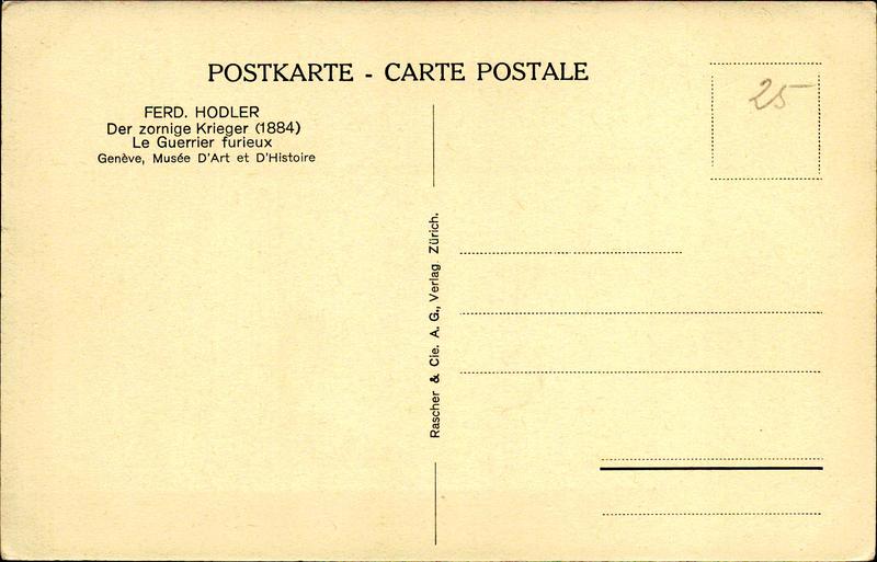 Zustandsbeschreibung der Ansichtskarte "Der zornige Krieger, Hodler"