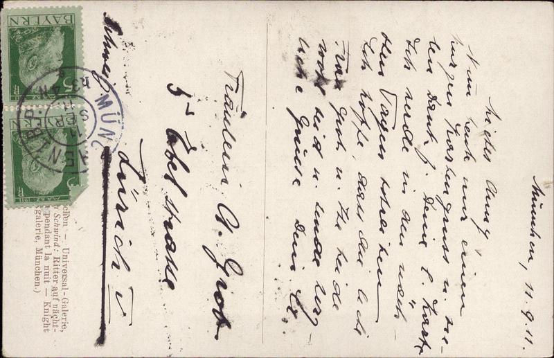 Zustandsbeschreibung der Ansichtskarte "Ritter auf nächtlicher Fahrt, Schwind"