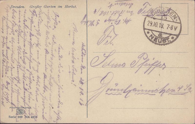 Zustandsbeschreibung der Ansichtskarte "Dresden, Grosser Garten im Herbst"