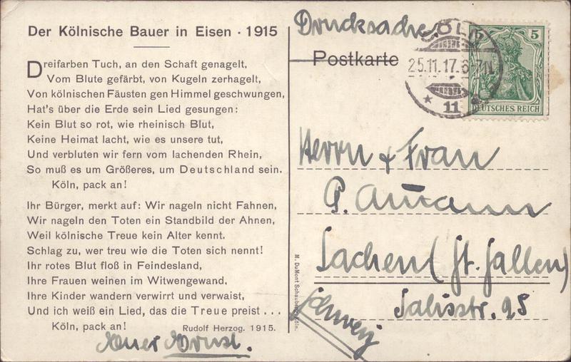 Zustandsbeschreibung der Ansichtskarte "der Kölnische Bauer in Eisen, 1915"