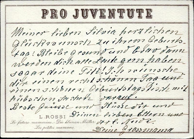 Zustandsbeschreibung der Ansichtskarte "Die kleinen Mütter, L. Rossi, Pro Juventute"