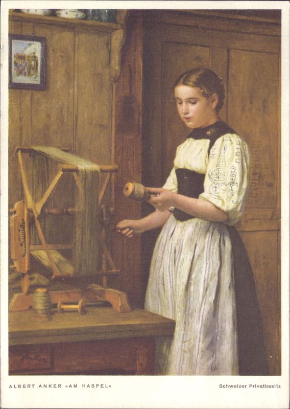 Zustandsbeschreibung der Ansichtskarte "Am Haspel, Albert Anker"
