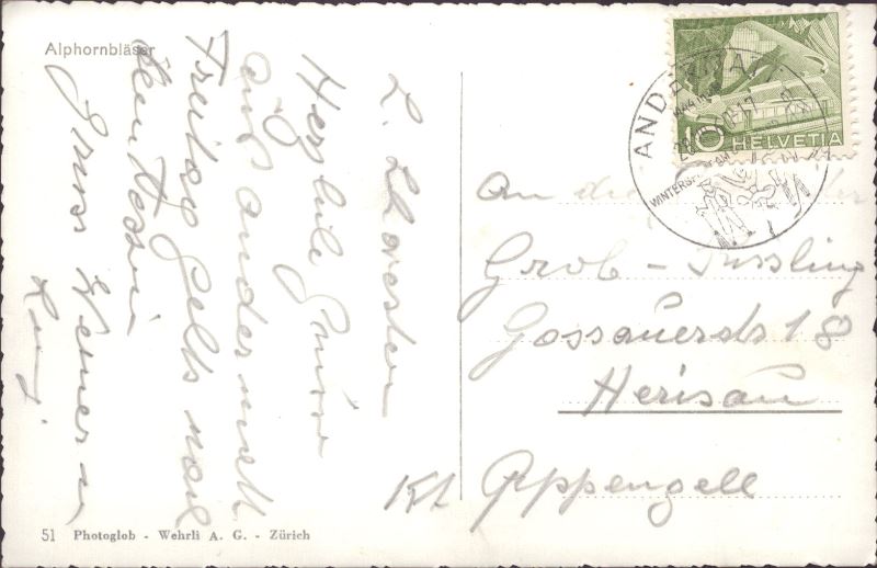 Zustandsbeschreibung der Ansichtskarte "Alphornbläser"