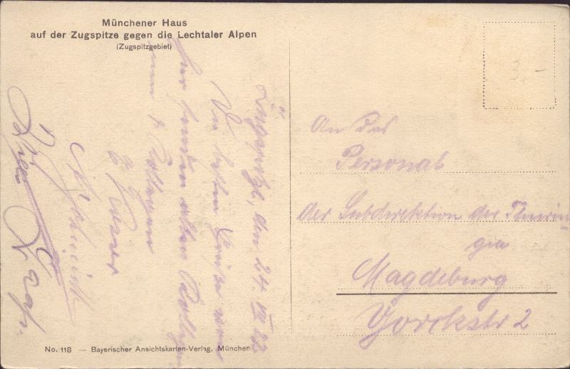 Zustandsbeschreibung der Ansichtskarte "Münchener Haus auf der Zugspitze"
