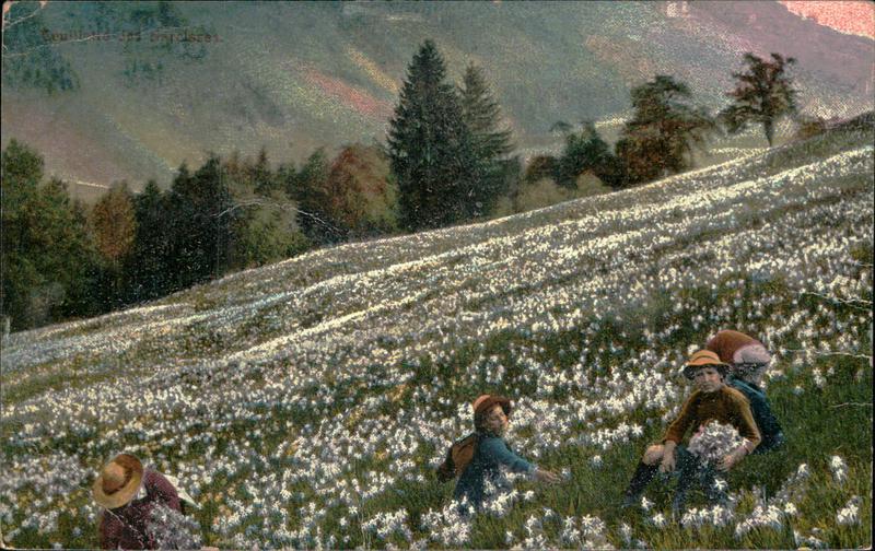 Zustandsbeschreibung der Ansichtskarte "Narzissenfeld"