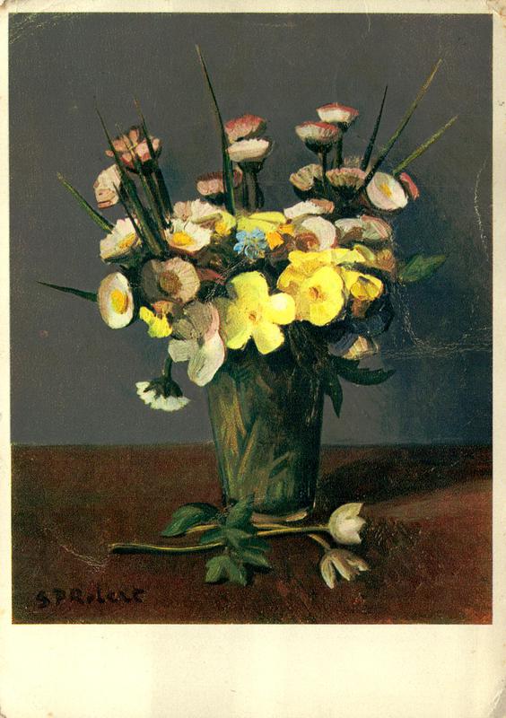 Zustandsbeschreibung der Ansichtskarte "Frühlingsblumen im Glas"