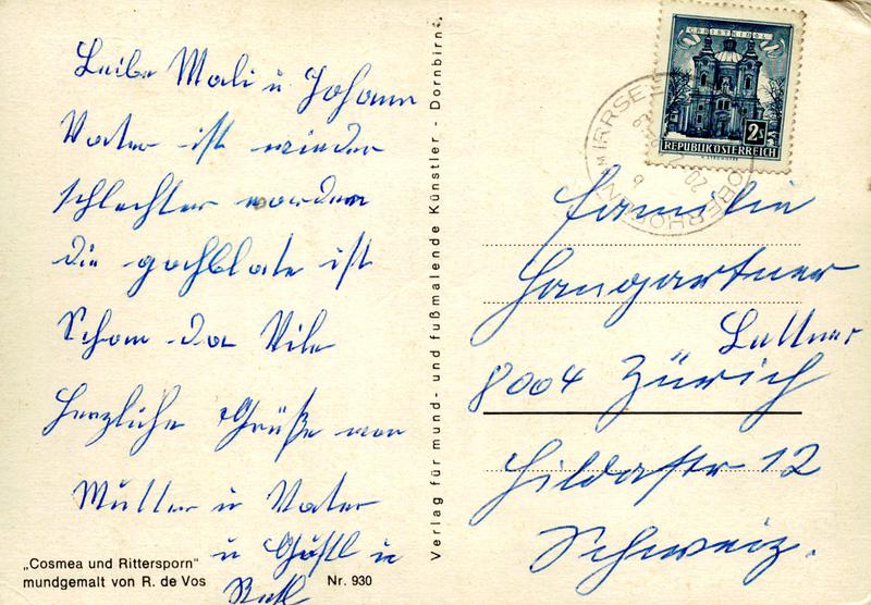 Zustandsbeschreibung der Ansichtskarte "Cosmea und Rittersporn"