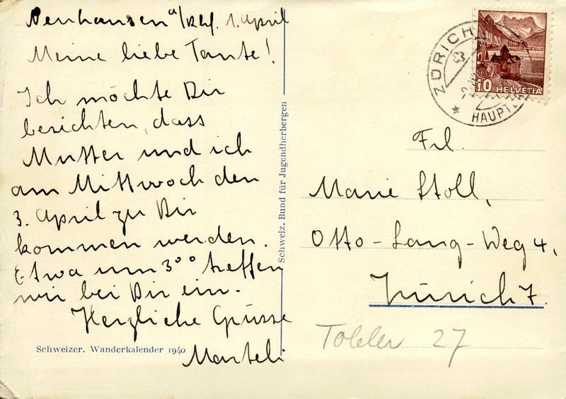 Zustandsbeschreibung der Ansichtskarte "Schweizer Wanderkalender 1940"