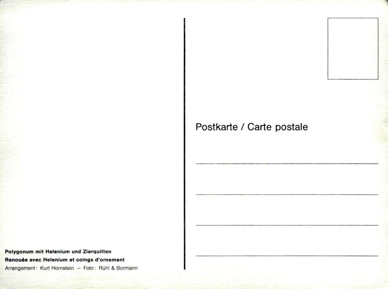 Zustandsbeschreibung der Ansichtskarte "Polygonum mit Helenium und Zierquitte"