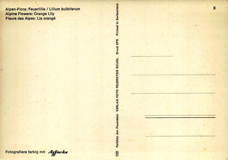 Zustandsbeschreibung der Ansichtskarte "Alpen-Flora, Feuerlilie"