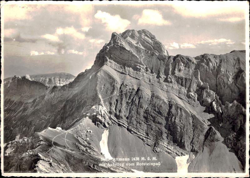 Zustandsbeschreibung der Ansichtskarte "Altmann mit Aufstieg von Rotsteinpass"