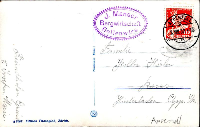 Zustandsbeschreibung der Ansichtskarte "Bollenwies, Säntis, Roslenfirst"