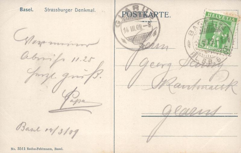 Zustandsbeschreibung der Ansichtskarte "Strassburger Denkmal (Basel Stadt)"