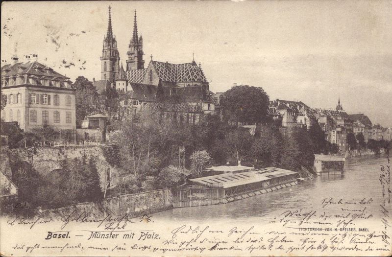 Zustandsbeschreibung der Ansichtskarte "Basel, Münster mit Pfalz"
