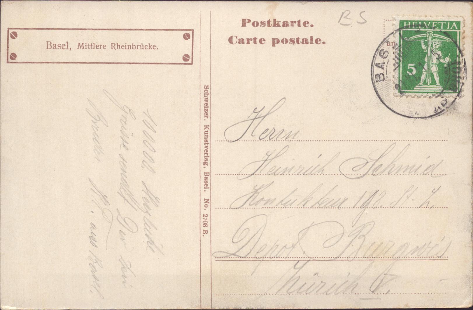 Zustandsbeschreibung der Ansichtskarte "Mittlere Rheinbrücke, Basel"