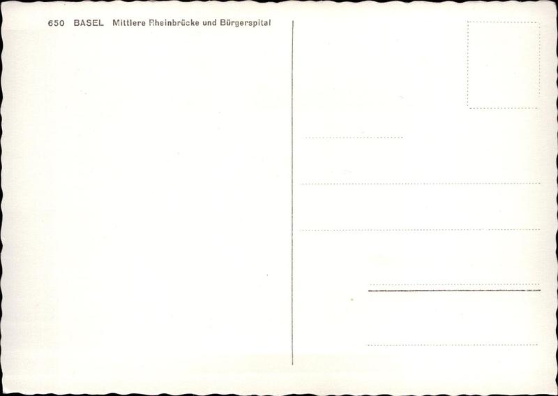 Zustandsbeschreibung der Ansichtskarte "Basel, mittlere Rheinbrücke und Bürgerspital"