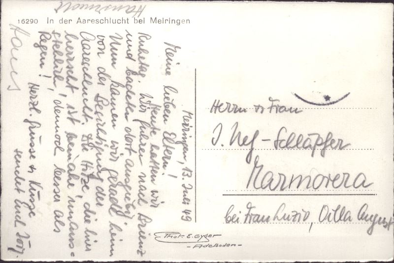 Zustandsbeschreibung der Ansichtskarte "In der Aareschlucht bei Meiringen. 1949"