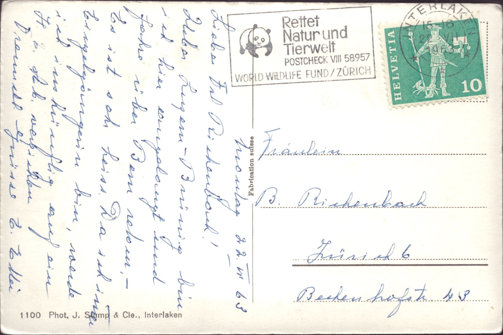 Zustandsbeschreibung der Ansichtskarte "Interlaken"