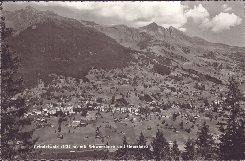 Zustandsbeschreibung der Ansichtskarte "Grindelwald (1037 m) mit Schwarzhorn und Gemsberg"
