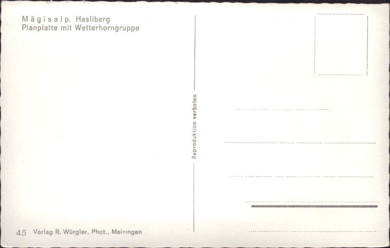 Zustandsbeschreibung der Ansichtskarte "Mägisalp - Hasliberg Planplatte mit Wetterhorngruppe"