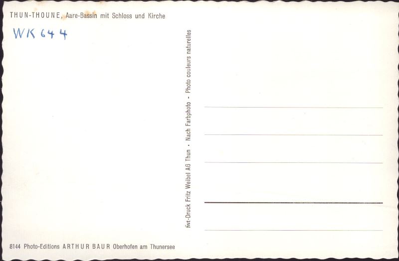 Zustandsbeschreibung der Ansichtskarte "Thun - Aare-Bassin mit Schloss und Kirche"