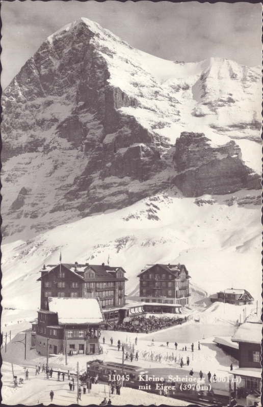 Zustandsbeschreibung der Ansichtskarte "Kleine Scheidegg (2061 m) mit Eiger (3970 m)"