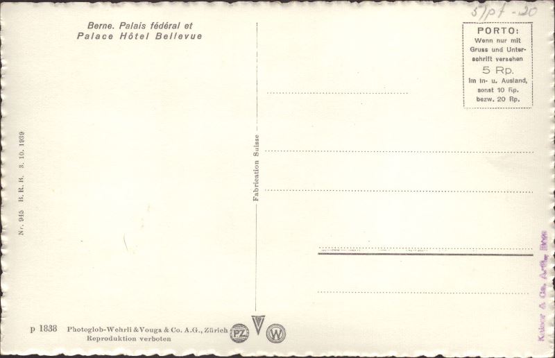 Zustandsbeschreibung der Ansichtskarte "Bern - Bundespalast und Palace-Hotel Bellevue"