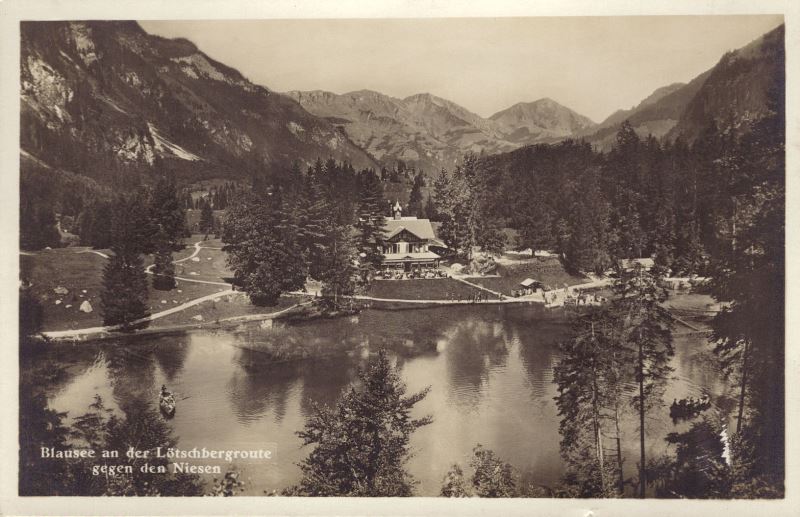 Zustandsbeschreibung der Ansichtskarte "Blausee an der Lötschbergroute gegen den Niesen"